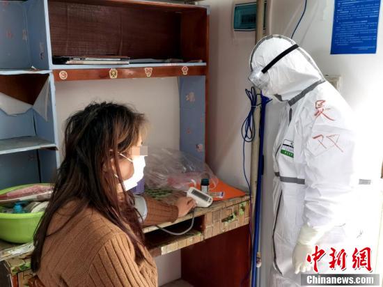 醫(yī)護(hù)人員為治愈出院患者測血壓。