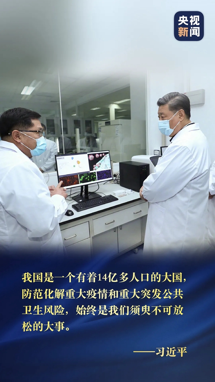 習近平總書記2日在北京考察新冠肺炎防控科研攻關工作,他強調,我國是一個有著14億多人口的大國,防范化解重大疫情和重大突發公共衛生風險,始終是我們須臾不可放松的大事。