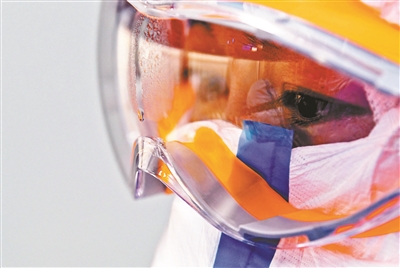 25℃的室溫,再加上密閉的防護服,王兆娥能感覺到身上的汗在往下淌,護目鏡上已經起了一層霧