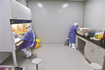 董曉根:平時我也會時刻提醒他們一定要保護好自己。在20日上崗之前,我專門給他們做了防護服的穿脫培訓,還派了一名同事每天檢查他們的防護服是否穿戴標準,如果不符合標準就不讓上崗?,F在要求在實驗室內工作的時間要嚴格控制在4個小時。