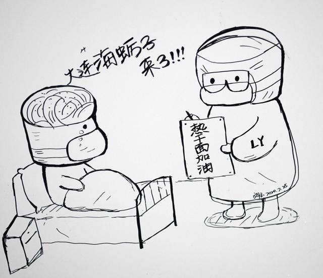 “雖然隔離衣?lián)踝×舜蠹业娜蓊仯俏蚁M岅?duì)友們轉(zhuǎn)過(guò)身來(lái)可以‘背’感溫暖。”在武漢協(xié)和醫(yī)院湘雅病房里有位“抗疫漫畫(huà)師”,她是中南大學(xué)湘雅醫(yī)院支援湖北醫(yī)療隊(duì)隊(duì)員吳思容。