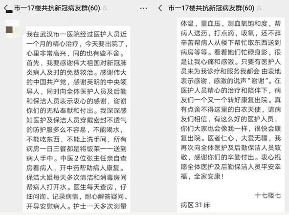 出院病人在病友群里感謝醫(yī)護(hù)人員的照顧