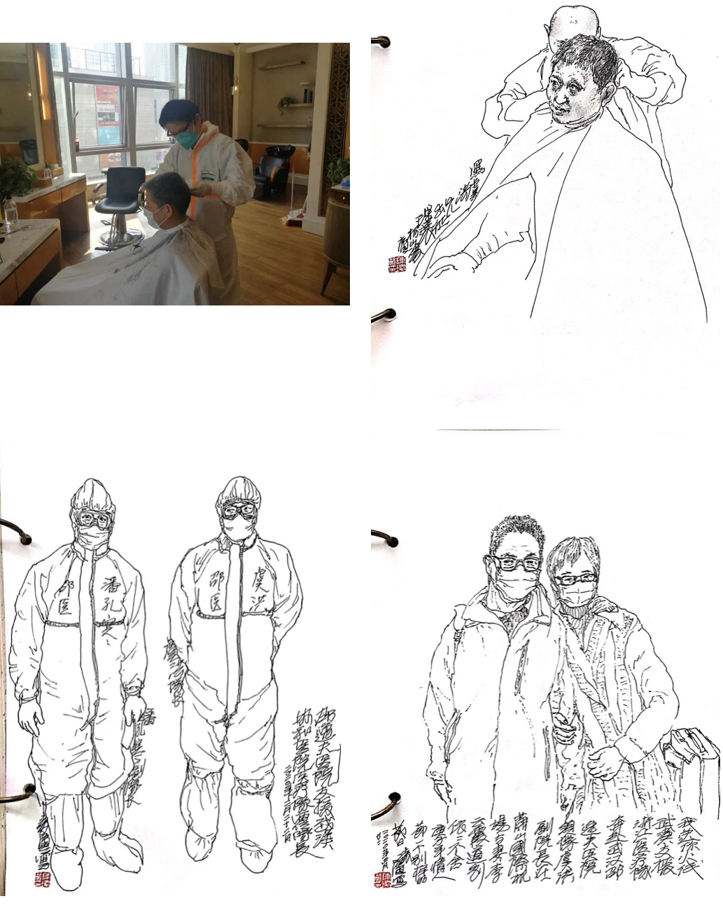 疫情期間,陳教授一直在創作戰“疫”主題的美術作品。這一次他特意為虞洪醫生畫了幾幅畫,并用“云送禮”的方式獻給戰“疫”最前線的老朋友。
