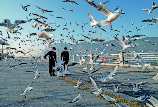 “很多人惦記著紅嘴鷗,怕它們餓瘦了。”張強說,有的市民一次就送來幾百斤鷗糧。