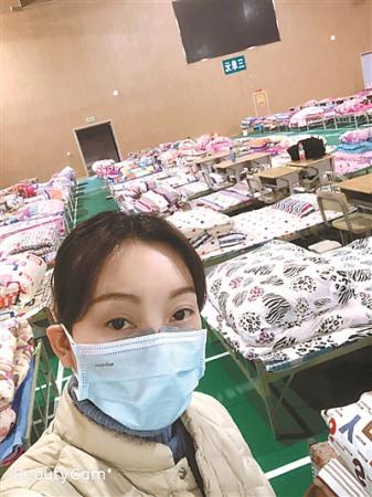 武漢病例暴增期間,各區的體育館開始改建成為方艙醫院。開院前大量的準備工作都需要人手,靳官萍就成為了其中一員?!拔胰サ氖呛樯襟w育館,第一批的三個方艙醫院之一。”48小時之內就要把空曠的體育館改建成擺滿病床的醫院,志愿者們的壓力也不小。靳官萍負責鋪電熱毯、整理床單被套和患者的一人份生活用品,讓每個病人來了就能住下。