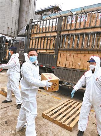 “物資包括口罩、消毒液等醫療用品,也有能儲存的食物,加起來總共300多噸?!狈鸬墓ぷ骶褪前衍嚿系臇|西搬下來,運到倉庫的指定位置,然后再等相關機構來領物資。