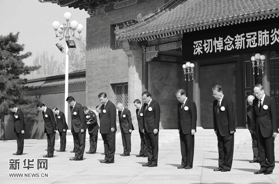 10時整,防空警報鳴響,習近平等向新冠肺炎疫情犧牲烈士和逝世同胞默哀。