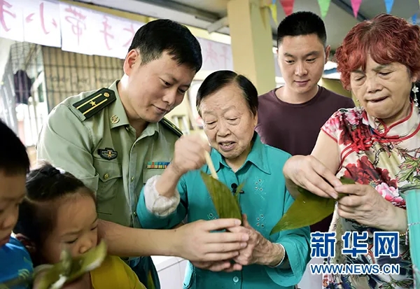 △“田媽媽”與孟召友包粽子過端午。新華網發(曾理 攝)
