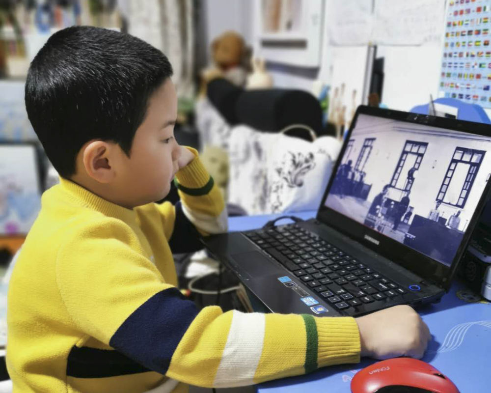 因為疫情“宅家”上網課的中小學生,