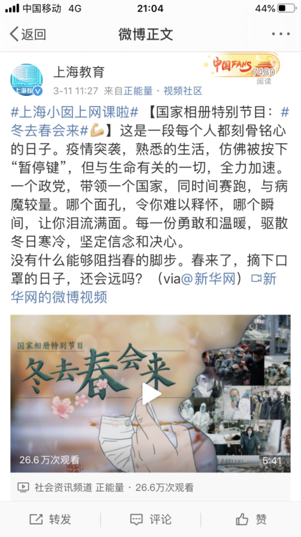 觀看“相冊特別節目”《冬去春會來》后,