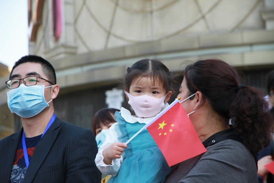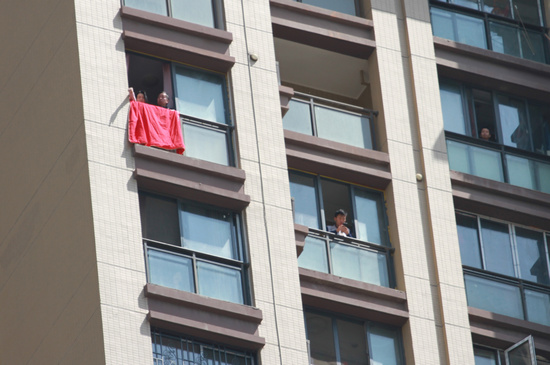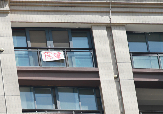 今天的歡送現場,多位志愿者和市民自發前來。今天的武漢陽光明媚,在北京協和醫院醫療隊駐地酒店旁邊的居民樓上,有市民在陽臺上掛出“保重”兩個大字,不少市民朝著醫療隊揮舞國旗,其中一戶市民拿著一床紅色的被子在陽臺上不斷抖動,為醫療隊送行。