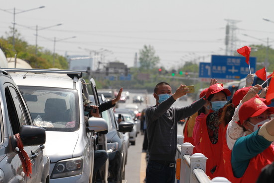 今天(4月15日)上午,北京協和醫院醫療隊撤離武漢。至此,來自全國各地的346支援鄂醫療隊撤離完畢。北京協和醫院醫療隊撤離時,在駐地中核國際酒店旁邊的居民樓,有武漢市民在陽臺不?;蝿蛹t色被子為醫療隊送行。