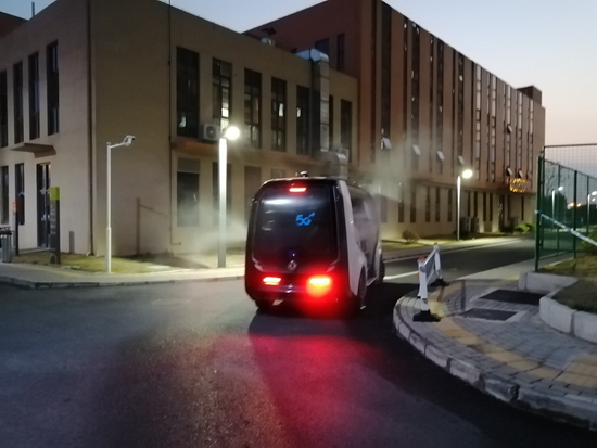 據悉,以Sharing-VAN無人駕駛觀光車為基礎平臺,臨時抗疫服務小組對車輛進行了自動駕駛、5G云控等方面的優(yōu)化改裝,同時加裝16L大容量全自動消毒噴霧器,以實現觀察區(qū)內高危道路的全程無人駕駛消毒作業(yè)。
