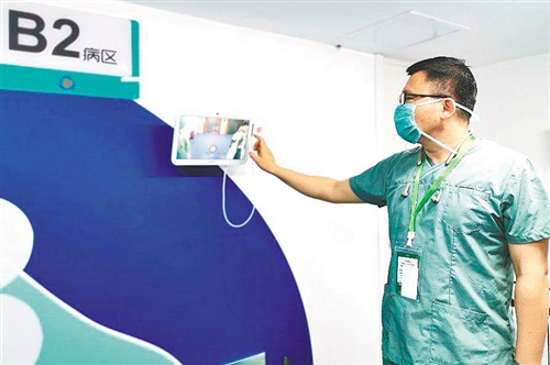 原慶通過可視系統與患者病房對話。余易安攝(中經視覺)