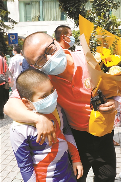 “兒子,爸爸打贏怪獸回來了!快來抱一個!”醫療隊員、“廣州實力中青年醫生”王川副主任醫師給9歲的兒子力力一個大大的擁抱。因為在出征儀式上拿出兒子的奧特曼卡表達戰“疫”決心,這位內分泌疾病專家在網絡上意外走紅,被網友稱為“奧特曼”爸爸。不過,這張奧特曼卡不小心遺失在武漢了。當天,力力特意穿了一件奧特曼衣服,帶著兩張全新的奧特曼卡,和媽媽一起來迎接爸爸回家。“我不在家的這段時間,感覺孩子變得更懂事了。”王川說道,“回家第一件事,我想給他們母子倆做一頓飯吃。”