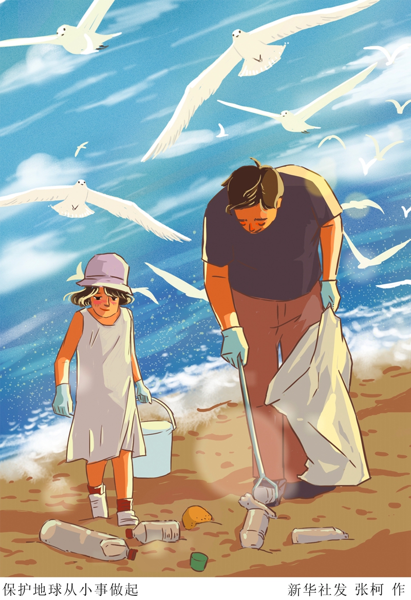 插畫:保護地球從小事做起 新華社發(fā) 張柯 作