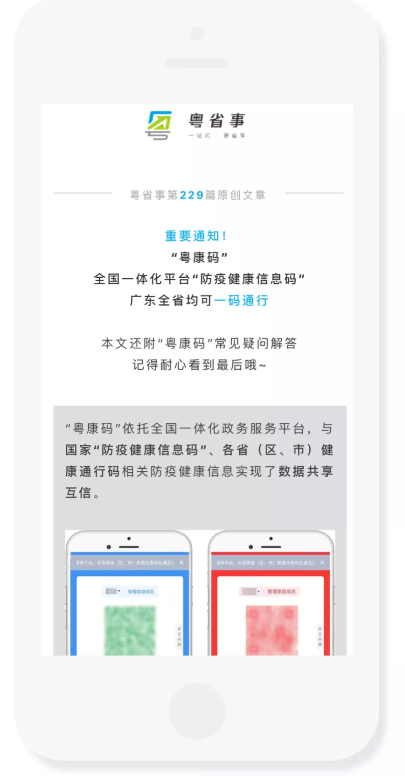 目前全國一體化平臺“防疫健康信息碼”和“粵康碼”已建立信息互通互認機制和規則,明確了跨地區流動人員健康通行碼信息的可信可用。