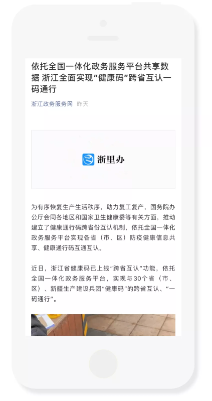 按照統一部署,浙江省目前已完成與全國一體化政務服務平臺對接,通過共享全國一體化政務服務平臺匯聚的各省“健康碼”信息,可自動生成浙江“健康碼”,外省來浙人員無需重復申報。
