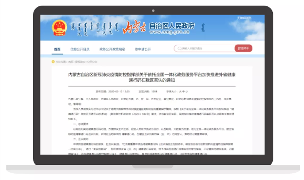 內蒙古自治區以規范和簡化健康通行碼辦理、方便群眾生產生活、促進人員有序流動為目的,以互聯網、大數據為支撐,依托全國一體化政務服務平臺,建立省際防疫健康通行碼互認機制,居民在當地申領的健康通行碼,在建立互認機制的省(區、市)之間互認,出行時無需重復申領。