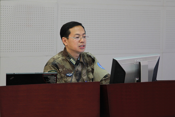張國春在作關于兵棋系統改進的報告(資料照片)。 新華社發(楊俊光 攝)