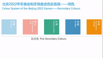 色彩的選擇源于對三個賽區城市冬季色彩及春節文化色彩的調研,以及對自然四時、天地五方和二十四節氣等中國傳統文化的理解。既體現冰雪運動、綠色奧運和科技奧運的內涵,又呈現獨特的中國文化魅力。