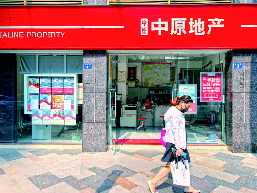 一位市民路過位于深圳福田區香蜜湖片區的一個房地產中介公司門店(5月10日攝)。記者趙瑞希攝