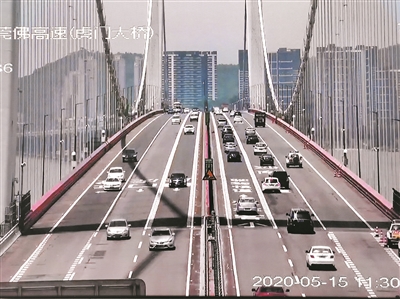 虎門大橋昨日通車后橋面交通監控截圖。