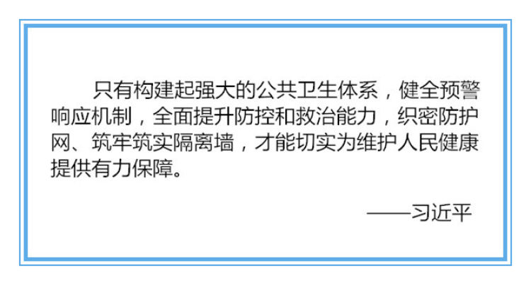 從健全預警響應到加強疾控人才隊伍建設,從提高醫療救治水平到強化科技支撐,從發揮中醫藥作用到完善公共衛生法律法規體系,從愛國衛生運動到人類命運共同體……總書記的講話,重點突出、部署具體,每一句都直面問題、直擊人心。