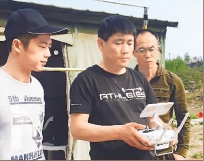 張海軍(中)在學習無人機駕駛技術。孔欣然攝