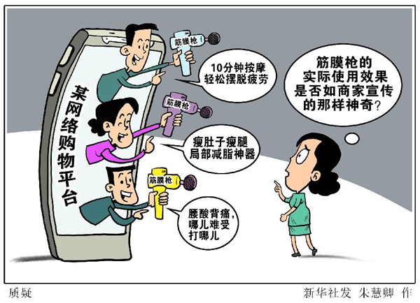 “10分鐘按摩輕松擺脫疲勞”“瘦肚子瘦腿局部減脂神器”“腰酸背痛,哪兒難受打哪兒”……近年來,筋膜槍成為一款酷炫的按摩產品,類似產品宣傳網上隨處可見。從百萬粉絲的微博大V博主到流量飛起的直播達人,不少人在賣力推廣、宣傳帶貨。