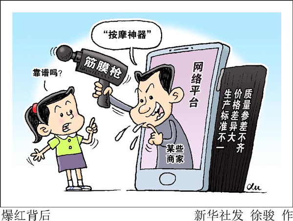 筋膜槍似乎“一夜”出圈成為網紅產品。今年“6.18”網絡購物平臺活動首日,某品牌筋膜槍開售1小時即突破百萬元銷售額。在某直播平臺,一位網絡達人首次帶貨就售出5000多件,累計銷售額近500萬元。還有明星在視頻平臺推廣,1萬余件產品幾乎“秒搶”。