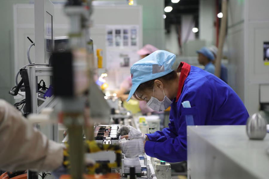 7月28日,在西寧市南川工業(yè)園區(qū)的青海比亞迪動力電池工廠內(nèi),工作人員在生產(chǎn)車間作業(yè)。新華社記者 趙玉和 攝