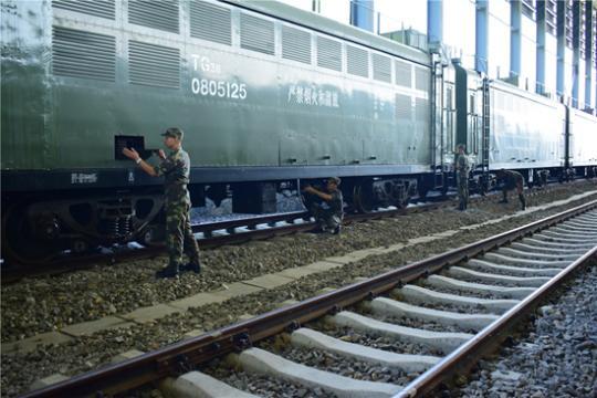 軍列到站,戰(zhàn)士們會第一時間下車檢查列車狀態(tài)。