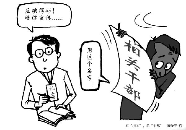 半月談?dòng)浾咴跂|部某省份采訪,隨機(jī)找到一名鄉(xiāng)鎮(zhèn)干部,了解農(nóng)村文化設(shè)施建設(shè)情況。記下這位干部的姓名職務(wù),半月談?dòng)浾邔懜鍟r(shí),地方卻來商量:先別提這位鄉(xiāng)鎮(zhèn)干部的名字,要在稿件里突出當(dāng)?shù)劓?zhèn)長。