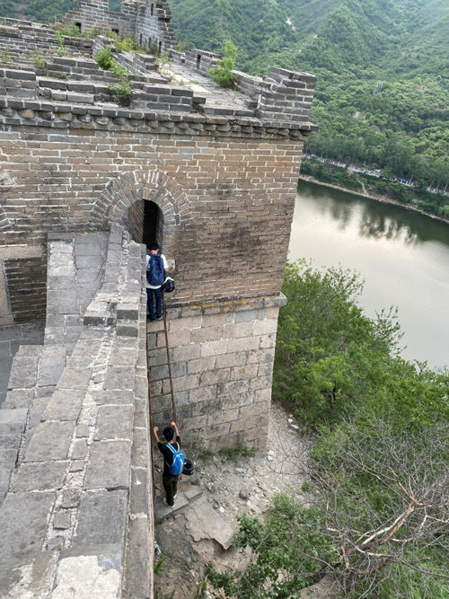 他說,登野長城是不允許的,近年來,北京市文物局也加大了巡查力度,設置了一些負責長城環保的公益志愿者和長城保護工作人員巡山。如果被發現,梯子肯定要被鄉鎮沒收。據稱,登城所用的梯子就被鄉鎮沒收了3次。為保險起見,他會早晨放梯,晚上再撤掉。