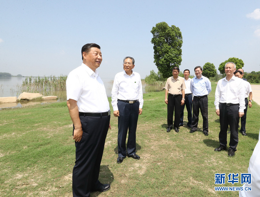 8月18日至21日,中共中央總書記、國家主席、中央軍委主席習(xí)近平在安徽省考察。這是19日上午,習(xí)近平在馬鞍山市薛家洼生態(tài)園,察看長江水情水勢和岸線生態(tài)環(huán)境。 新華社記者 鞠鵬 攝