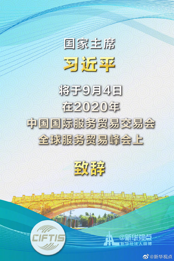 外交部發言人華春瑩9月3日宣布:2020年中國國際服務貿易交易會全球服務貿易峰會將于9月4日在北京舉行。國家主席習近平將在峰會上致辭。?