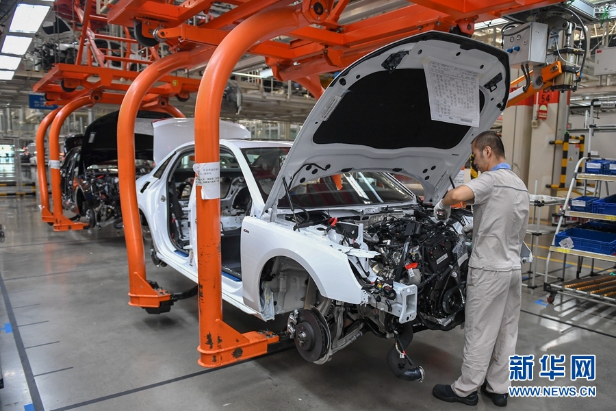 工人在一汽-大眾長春基地總裝車間裝配車輛(9月1日攝)。9月15日,國家統(tǒng)計局?jǐn)?shù)據(jù)顯示,8月份,全國規(guī)模以上工業(yè)增加值同比增長5.6%,增速比7月份加快0.8個百分點。1至8月份,全國規(guī)模以上工業(yè)增加值同比增長0.4%,增速實現(xiàn)由負(fù)轉(zhuǎn)正。 新華社記者 張楠 攝