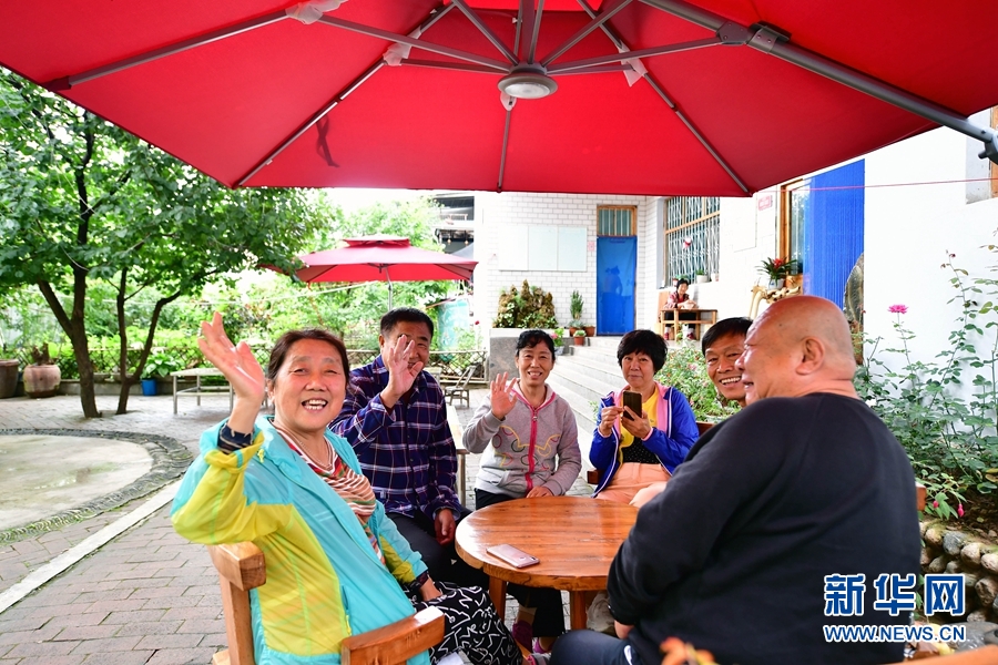 在河南省洛陽市欒川縣叫河鎮(zhèn),游客在民宿的小院內(nèi)休憩(8月22日攝)。 新華社記者 馮大鵬 攝