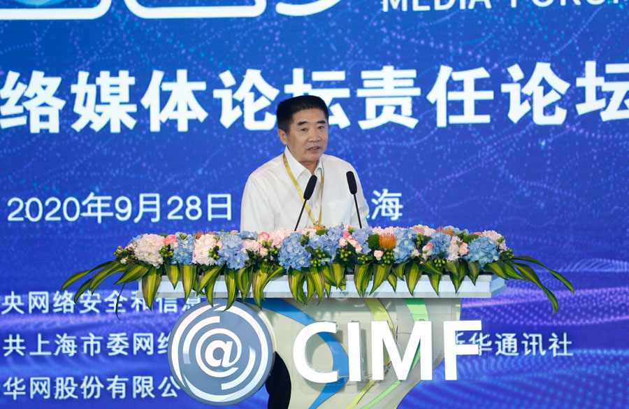 中國軍事文化研究會網絡研究中心主任杜文龍在2020中國網絡媒體論壇責任論壇做主題演講。新華網 陳杰 攝
