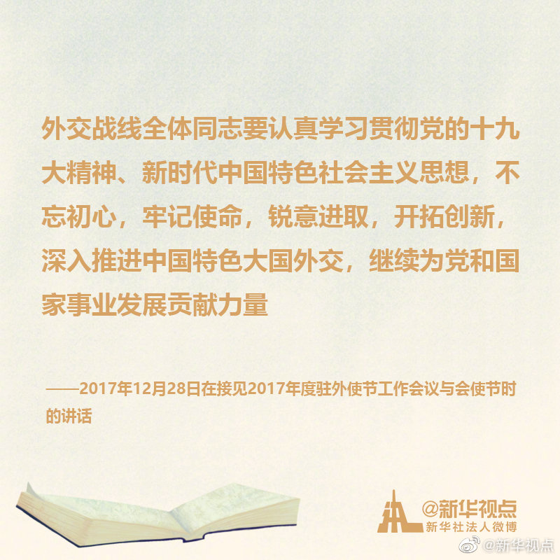 《習近平談治國理政》第三卷生動記錄了黨的十九大以來習近平總書記在領導推進新時代治國理政實踐中發表的一系列重要論述,全面系統反映了習近平新時代中國特色社會主義思想,集中展示了馬克思主義中國化的最新成果。關于深入推進中國特色大國外交,一起來學習總書記的這些金句↓