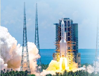 2020年7月23日中午,“天問一號(hào)”搭乘長征五號(hào)遙四運(yùn)載火箭,在文昌發(fā)射場順利升空,開啟了中國人的首次火星之旅。 (除署名外,均新華社發(fā))