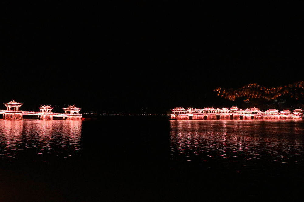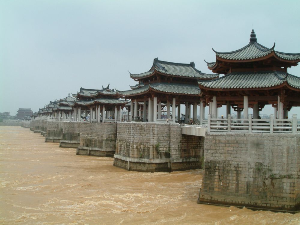 ↑?2007年重修中的廣濟橋和中段“十八梭船”啟閉式浮橋