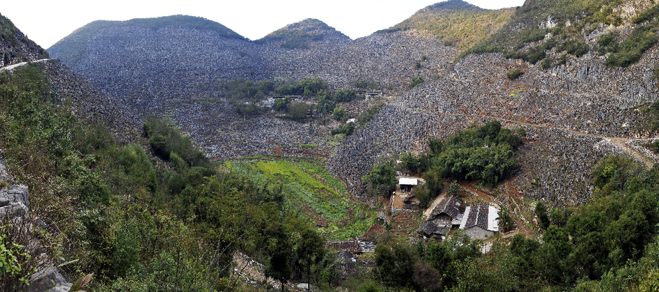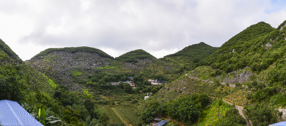 西疇縣是全省乃至全國(guó)石漠化最嚴(yán)重的地區(qū)之一,99.9%的面積屬于山區(qū),石漠化面積占75.4%,生存發(fā)展環(huán)境極為惡劣。圖為1991年被石漠化包圍的村莊——西灑鎮(zhèn)么灑村委會(huì)大鄔麻村小組。(呂德仁攝)??