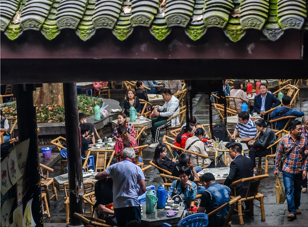 到今天,只留下了鶴鳴茶社。無論是外來游客,還是本地人,要體驗最成都的茶館生活,都要到此一游,坐上竹椅,泡上一碗茶,細(xì)品老成都的味道。