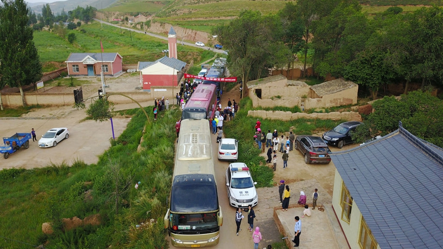 寧夏西吉縣白崖鄉半子溝村村民準備集體搬遷至寧夏銀川市金鳳區潤豐村(2017年8月17日攝,無人機照片)。新華社記者 王鵬 攝
