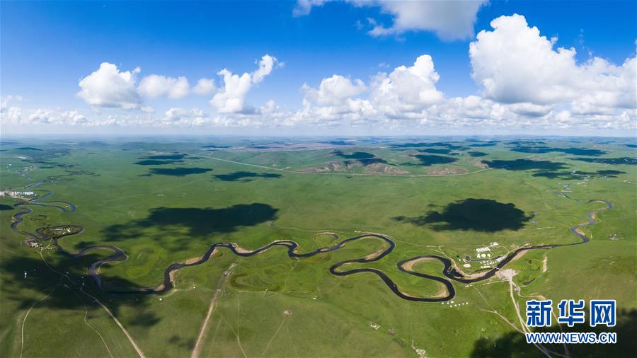 2019年8月25日拍攝的內(nèi)蒙古呼倫貝爾市陳巴爾虎旗境內(nèi)的莫日格勒河局部(無(wú)人機(jī)照片)。新華社記者 沈伯韓 攝