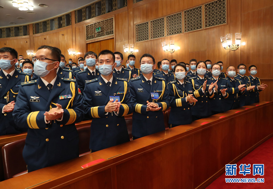 ??? 10月23日,紀念中國人民志愿軍抗美援朝出國作戰70周年大會在北京人民大會堂隆重舉行。圖為志愿軍老戰士、老同志入場時,大會現場的解放軍和武警部隊官兵代表起立鼓掌。(新華網 翟子赫 攝)