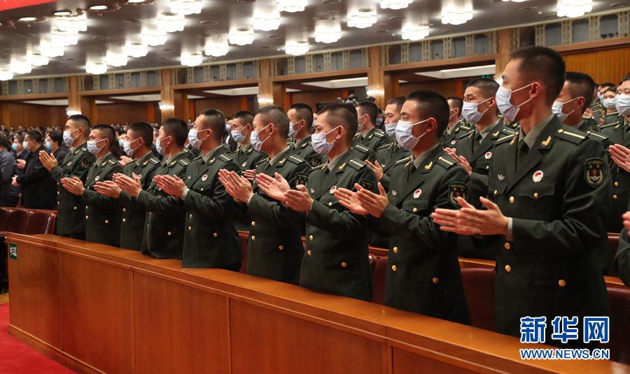 ??? 10月23日,紀念中國人民志愿軍抗美援朝出國作戰(zhàn)70周年大會在北京人民大會堂隆重舉行。圖為志愿軍老戰(zhàn)士、老同志入場時,大會現(xiàn)場的解放軍和武警部隊官兵代表起立鼓掌。(新華網(wǎng) 翟子赫 攝)