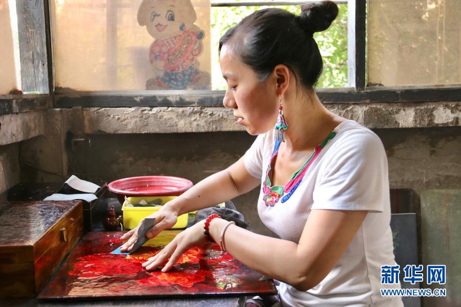 重慶漆藝第六代市級傳承人陳芷月在漆藝工作室制作漆器(8月10日攝)。新華社記者 吳燕霞 攝